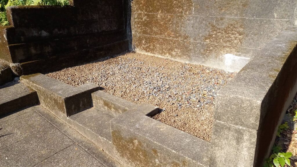 - 環境に配慮した施工 那智勝浦町の豊かな自然に囲まれた墓地にて、周囲の区画に影響が出ないよう、細心の注意を払って搬出・清掃を行いました。